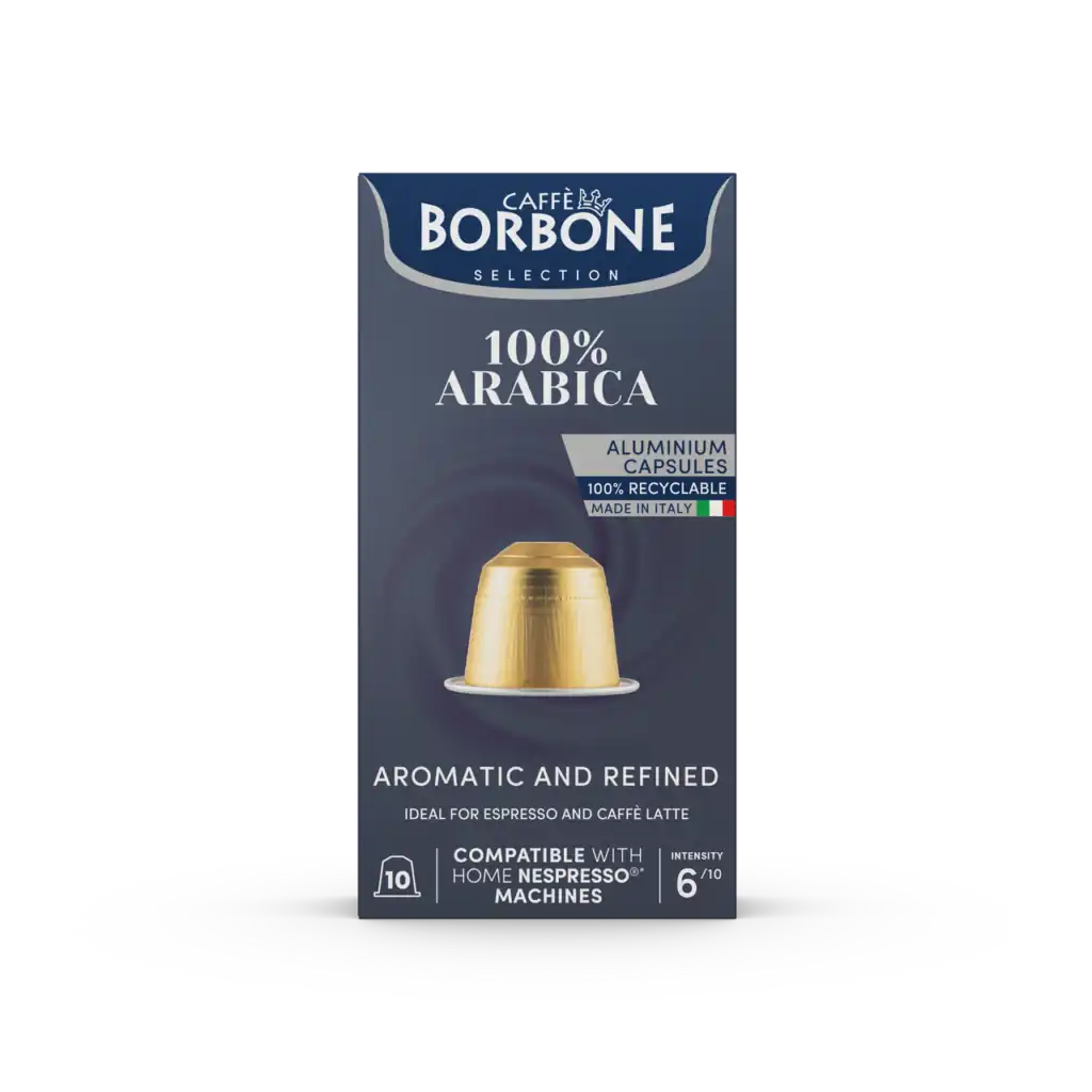 Caffe Borbone’un Nespresso Original® makineleri için özel olarak tasarladığı %100 Arabica Alüminyum Kapsüller ile rafine kahve lezzetini keşfedin. Bu kapsüller, saf Arabica çekirdeklerinin üstün kalitesini ve zengin aromasını yansıtan dolgun gövdeli, premium bir espresso sunar.